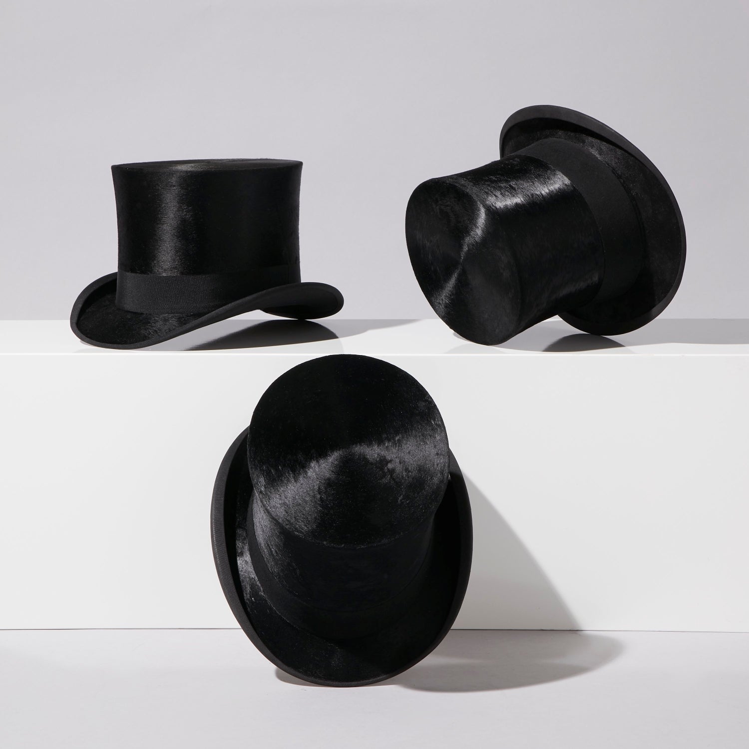 The modern versions we carry are the fur felt top hat in black and grey, and although these styles tend to be bulkier they do last well. In addition we have the Melusine Top Hat and its taller counterpart the Heatherington Top Hat which are the closest alternative to an original silk top hat, but finished with ‘melusine’ fabric, they don't have the same impressive shine, look and lightness as an antique silk top hat.