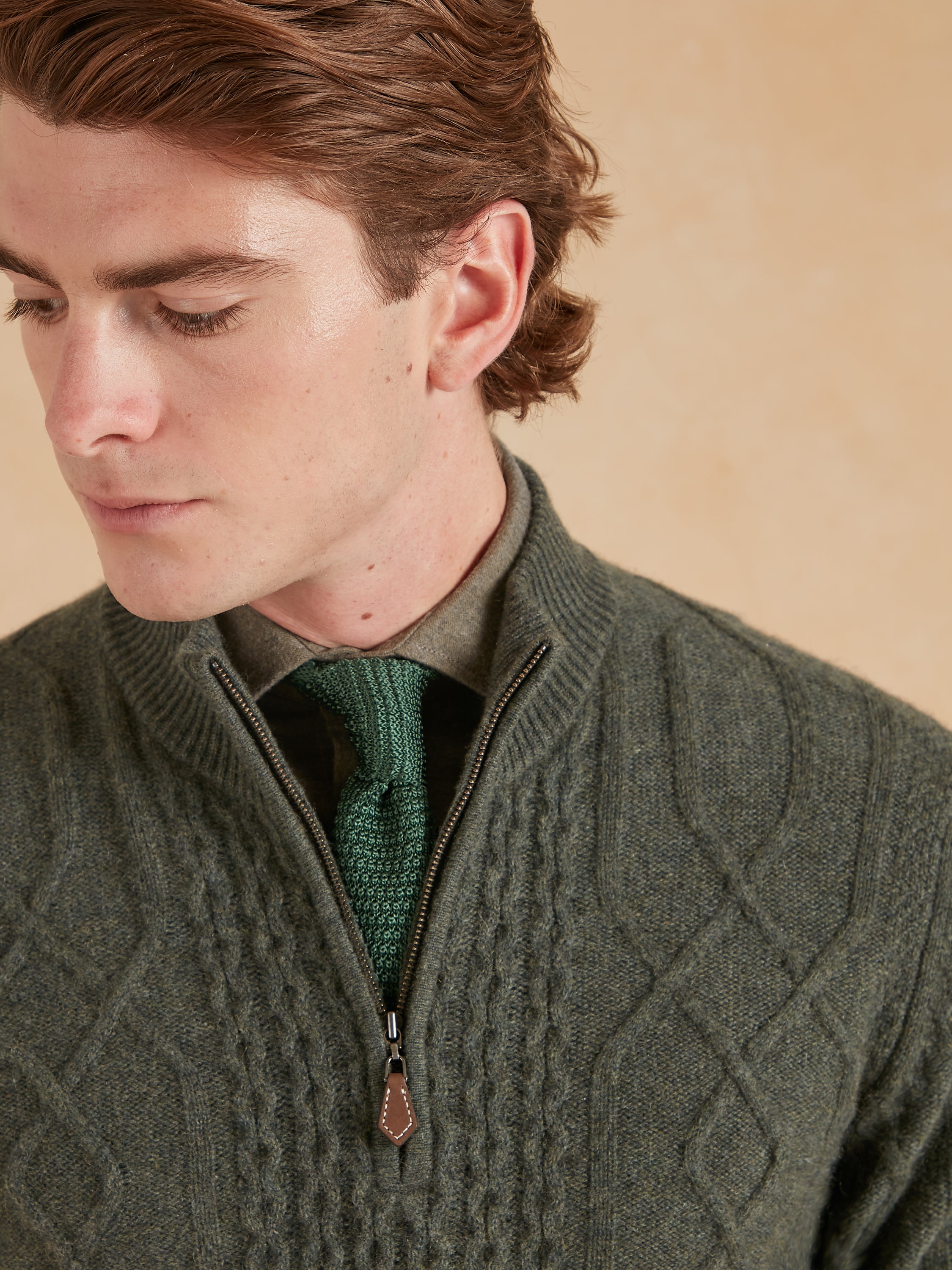 Cable Knit Cashmere Quarter Zip Jumper - Rocky Mountain