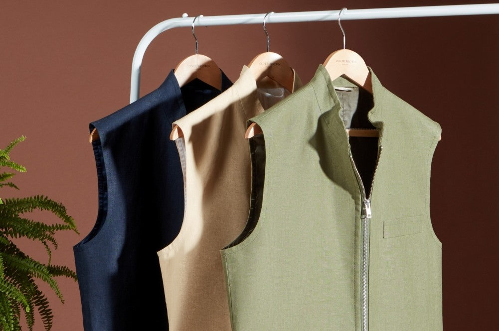 Reversible Wool and Cotton Gilet - Navy & Olive