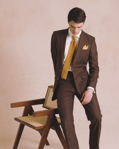 This timeless dark brown jacket is cut in Oliver Brown's Eaton block and is made from 100% linen; selected for its durability and breathability, it is perfect for summers at home or abroad. It features a notch lapel, double welt pockets with flaps, and four button working cuffs.