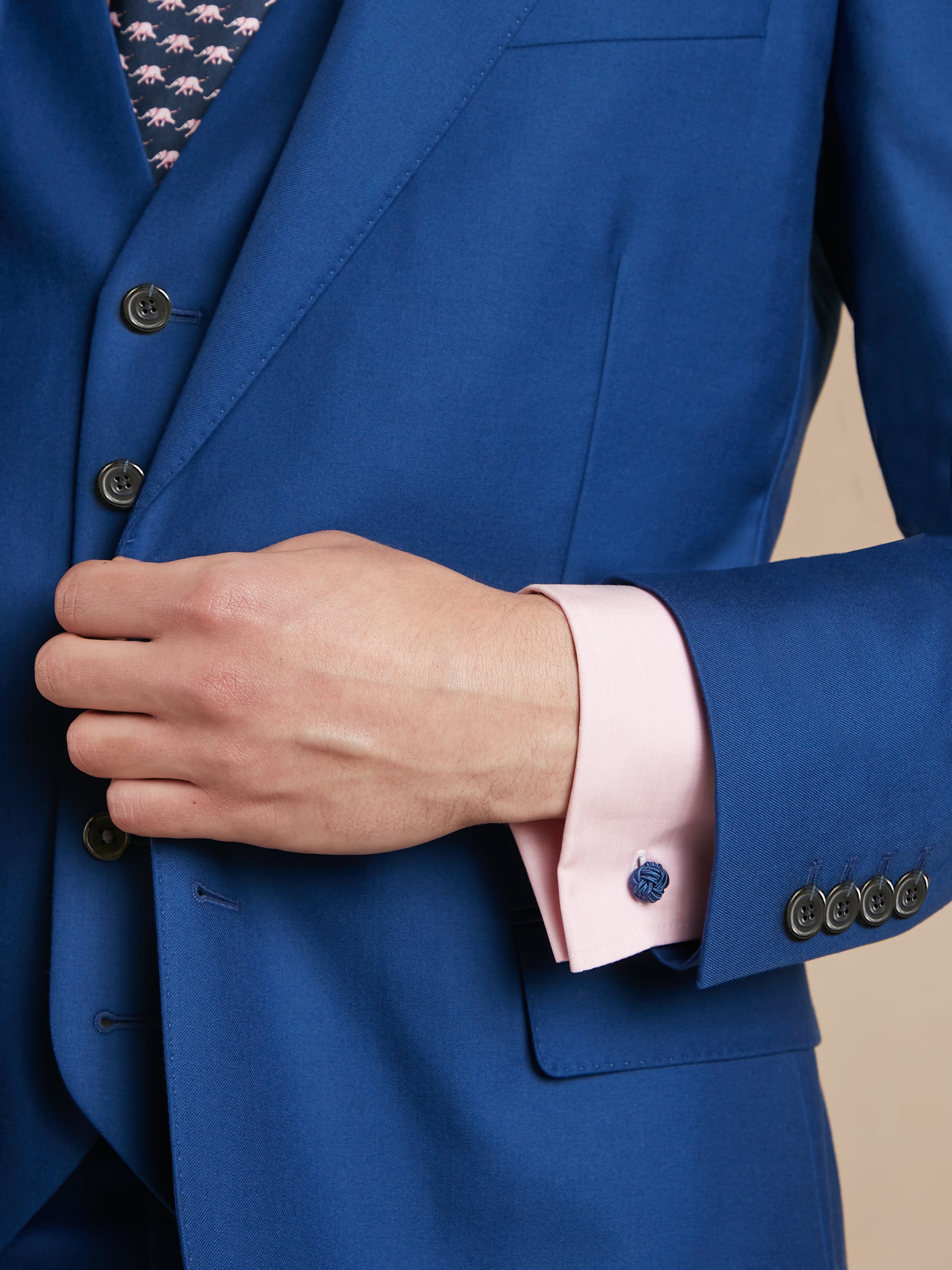 The Mayfair jacket is crafted with a lightweight layer, creating a sharp, structured profile that’s durable and easy to maintain. Refined touches include working cuffs, a navy lining, and double vents for movement and comfort. The trousers are finished with a zip-and-clasp closure and side adjusters for a personalised fit, while interior brace buttons offer a traditional option for added reassurance.