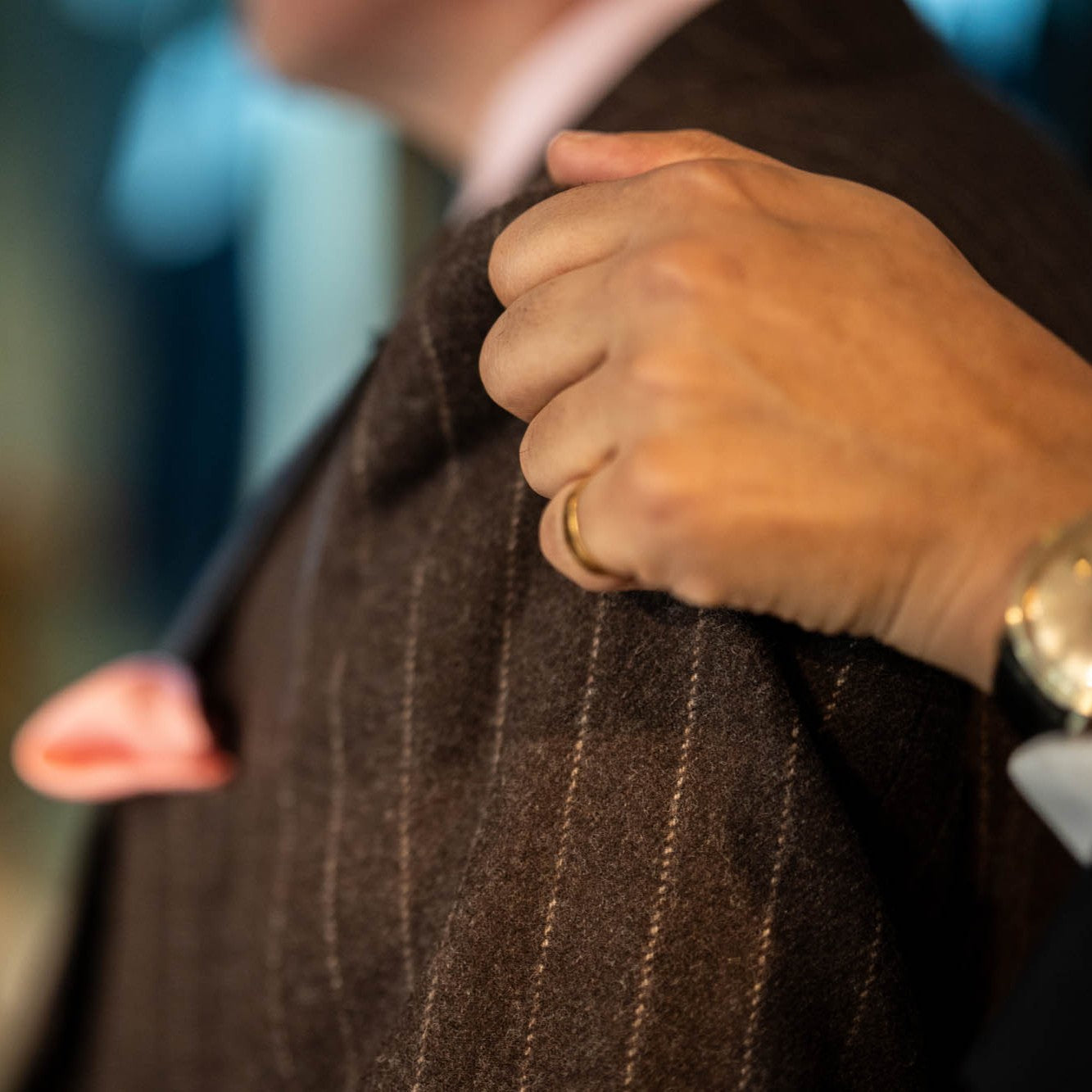 An Oliver Brown bespoke piece begins and ends with you. Each garment is cut from scratch to your exact measurements and style, shaped across multiple fittings to ensure a precise, confident fit. Hand-crafted in London from the finest British and European cloths, we also welcome special projects, bespoke tweeds, and larger commissions. For those seeking the ultimate in personal tailoring, bespoke offers the pinnacle of heritage, craftsmanship, and individuality.