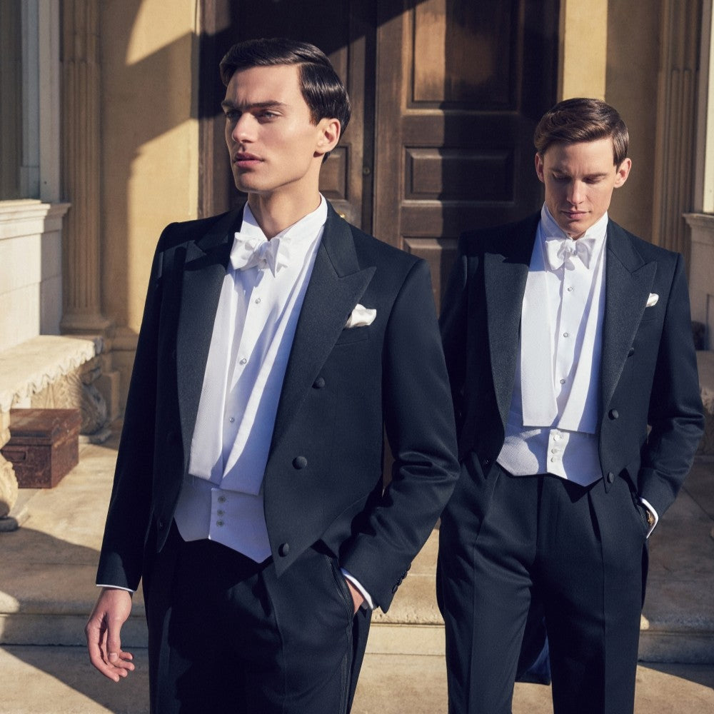 Our evening wear collection is designed to carry you effortlessly from a formal dinner to a night out on the town. Explore signature smoking jackets, elegant black and white tie outfits, and premium hire options. Be prepared for every event on your calendar with Oliver Brown’s timeless evening wear.